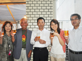 3回目のバーベキューパーティです。いつも通り竜先生の「カンパ〜イ!」の声でスタート。バーベキューパーティ名誉顧問の青山社長の指示のもとパーティは進行。途中ご近所の宮腰さんからも差し入れをいただき、竜先生と2人記念にパチリ。4月から新しく来てくださっている竜美幸先生と金山先生にもご参加いただき、とてもにぎやかな会となりました。ジューシーなお肉、サザエやハマグリなどなど、皆の熱気もあいまって、少々肌寒い日でしたがビールもおいしくいただけました。そうそう、塩麹で一晩漬けた鶏肉は絶品でした。一度お試しあれ!
